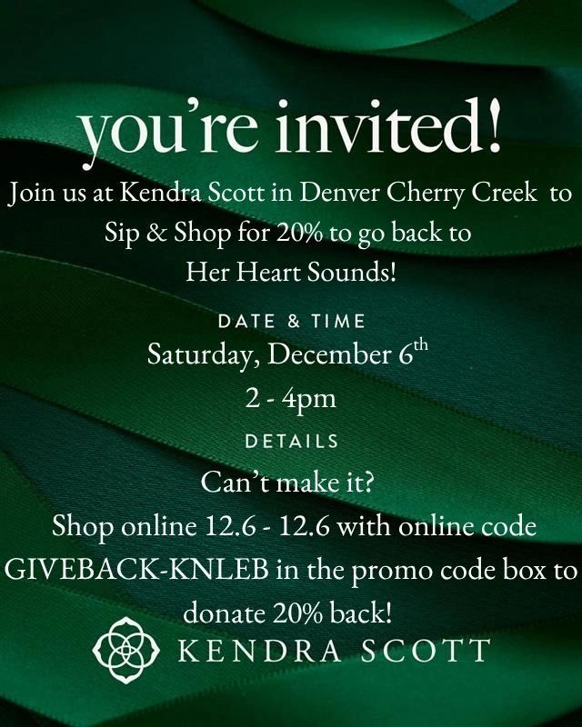 Twenty percent of your purchase will be donated to Her Heart Sounds. Shop online with the online code.